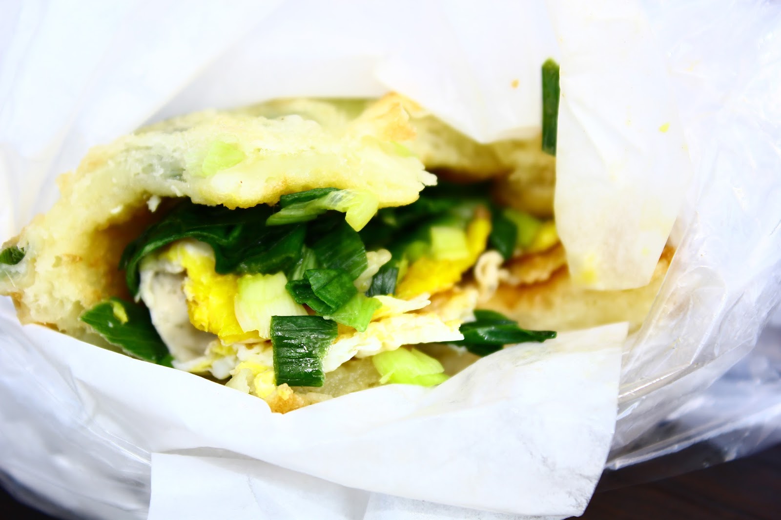 很特別是用紙墊蔥油餅每一塊都炸得恰是到好處不過也很怕會吸很多油就是了...