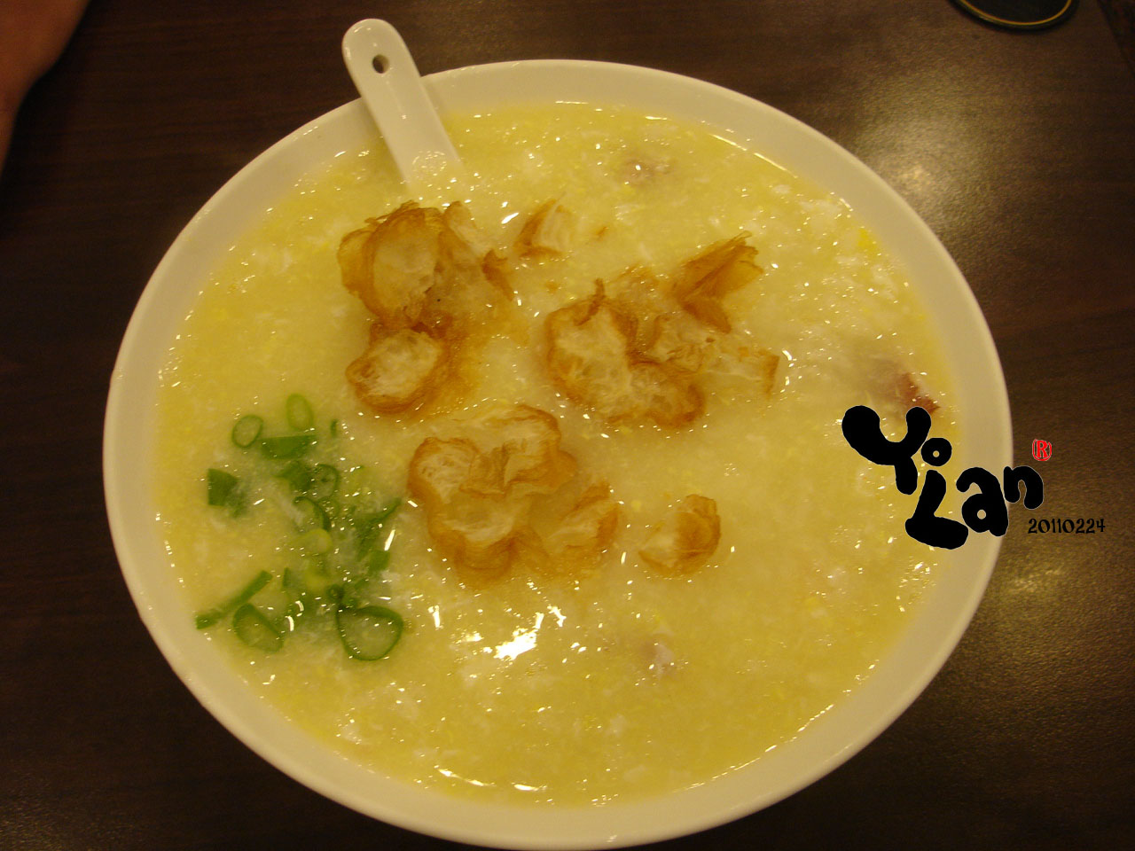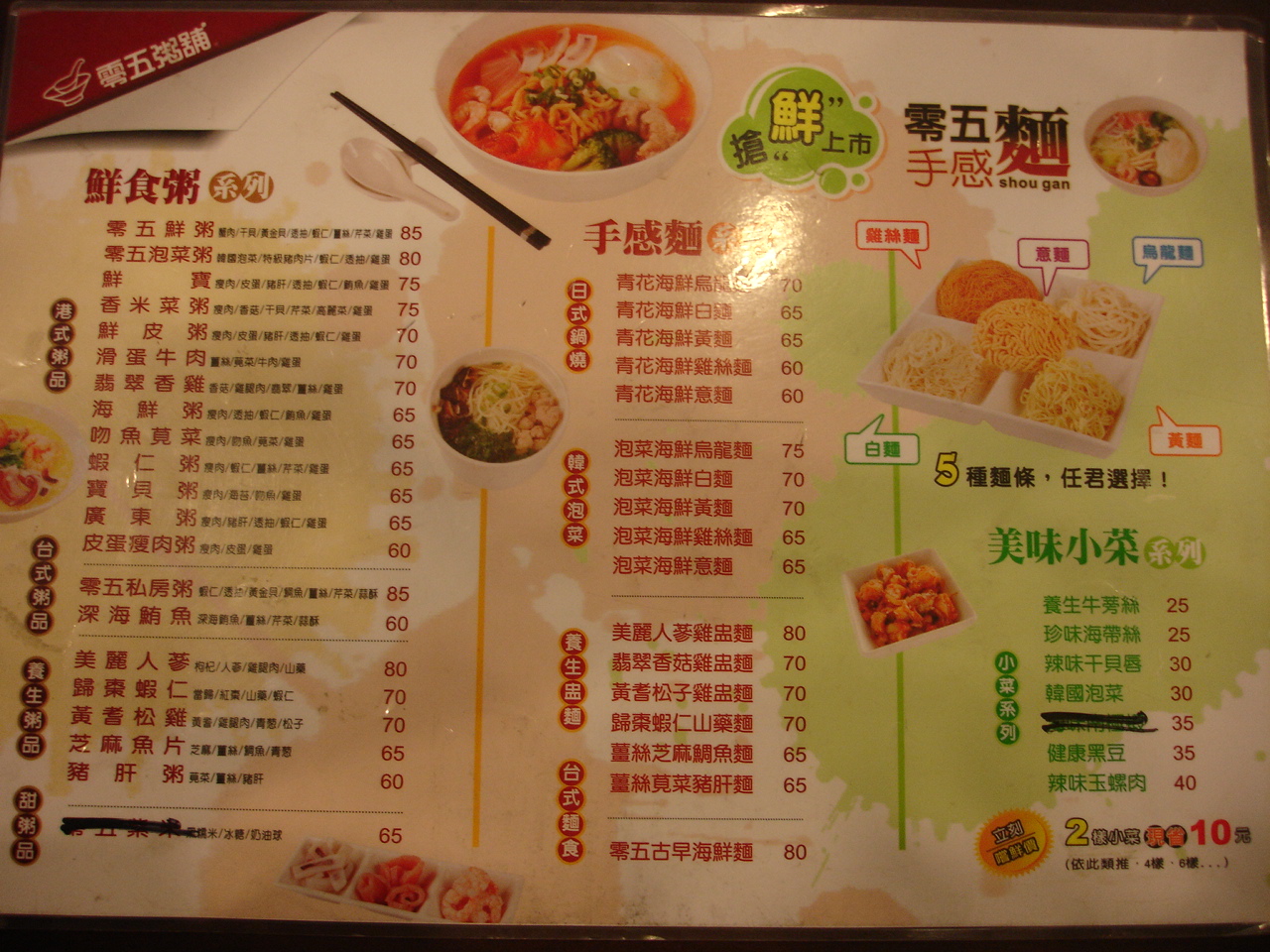 好久沒吃粥了... 美村南路上的零五粥舖 賣粥的連鎖店 筆者除了吃過九龍廣東粥以外好像也沒吃過連鎖的粥店 現在除了各式各樣的粥以外還有各式各樣的麵... (官網上還說有義大利麵...這家好像還沒有) 價位都在60~85不等 筆者安全起見 來粥店還是點粥好了... (以免踩雷) 好大碗這樣 湯汁和薄蛋汁混合得很鮮甜